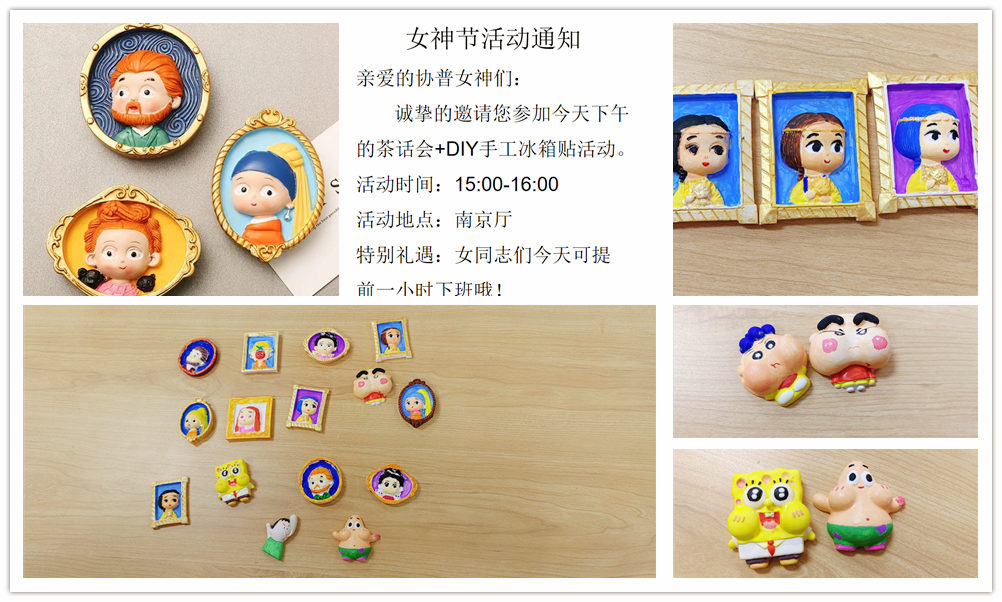 2023年3月8日,值此婦女節(jié)到來之際,協(xié)普不僅為在廠的各位女士準(zhǔn)備了暖心的生活禮品,還將大家聚在一起舉辦了輕松愉快的手繪活動(dòng)?,F(xiàn)場(chǎng)氣氛歡快,大家悠閑地完成了各自的手繪冰箱貼,活動(dòng)結(jié)束后全體女同志提前下班,開心地結(jié)束了一天的工作。