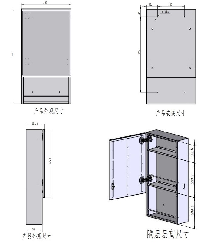 可選材質(zhì):鍍鋅鋼板、鋁合金、不銹鋼; 銀鏡、無銅鏡、不銹鋼鏡面。